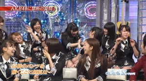 During the talk segment of the show, the hosts discuss “forbidden topics” with AKB48 members such as “When it comes to school uniforms, I’m at my limit” or “I have an embarrassing secret I can’t tell people.” Each AKB48 member has a buzzer button and she presses it if she thinks the situation being discussed applies to her. The host then select one of the members to talk in more detail about the topic.